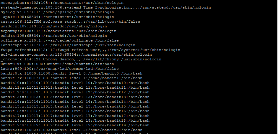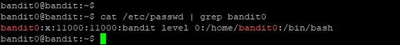 bandit0 라는 user의 정보를 알 수 있는 방법은 /etc/passwd 파일에서 확인할 수 있다.